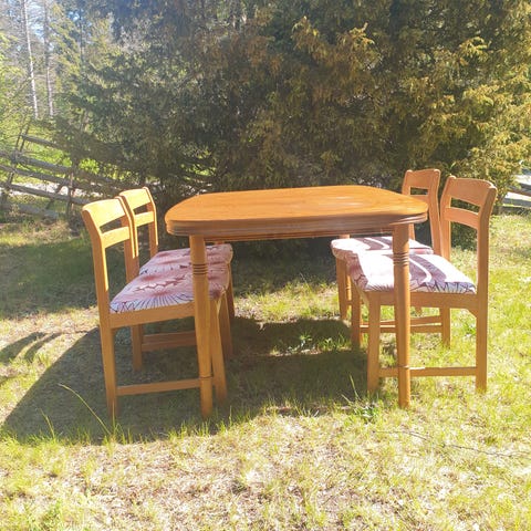 Mio matbord i trä med 6 tillhörande stolar.