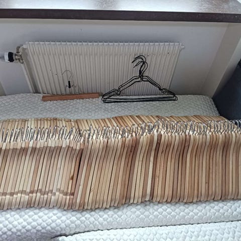 Ett trettiotal trägalgar säljes pga platsbrist i garderoben. Flera av tjockare modell som lämpar sig för tyngre plagg som tex kappor och jackor. Hämtas i Råsunda, Solna.