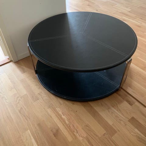 Gammal svart stol med brun skinnsits 100kr