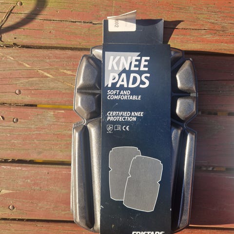 Berdal knäskydd i svart färg med blå remmar. Knäskyddet är tillverkat i ett slitstarkt material och är utformat för att skydda knäna vid arbete eller andra aktiviteter som kräver knäskydd.