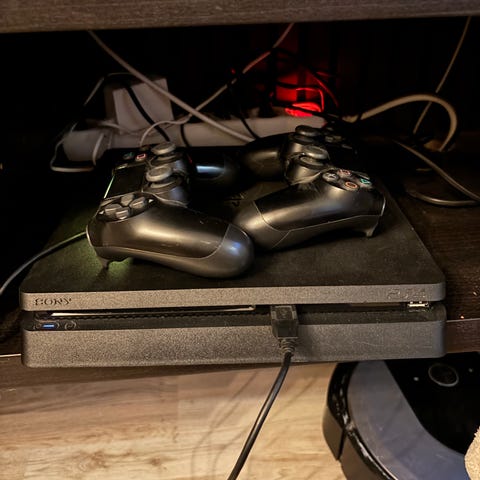 PlayStation 4 spelkonsol inklusive spel. Konsolen är svart och kompatibel med PlayStation 4-spel.