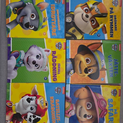 10 stycken olika små böcker om Paw Patrol.