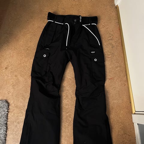 Everest skidbyxor, svarta, damstorlek 36, tillverkad i polyester. Innerbens längd 77 cm. Plagget har dragkedjor vid benslut.