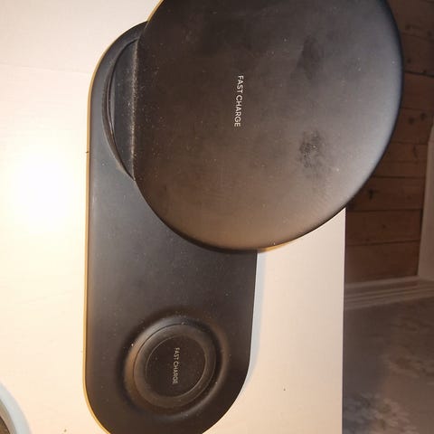 Samsung EP-PG950 trådlös laddare med stöd för snabb laddning. En svart laddare designad för kompatibla enheter med Qi trådlös laddningsteknik.