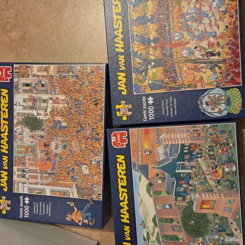 Säljer 2 st Wasgij Pussel med 1000 bitar. Olika motiv; Destiny Park Thrills och Shopping Shake up. Alla byggda en gång. Alla bitar finns. 95 kr st.