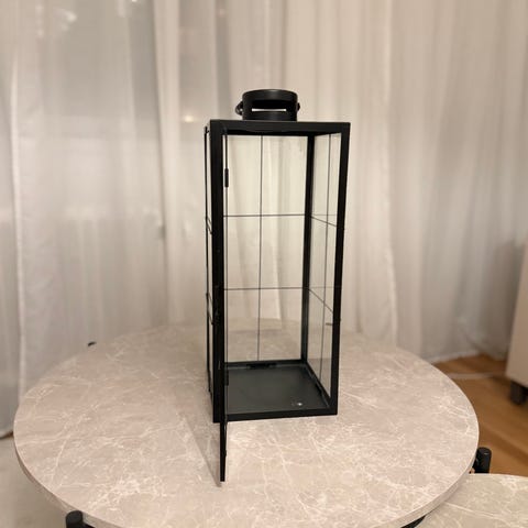 Lykta i vitt glas med brunt mönster