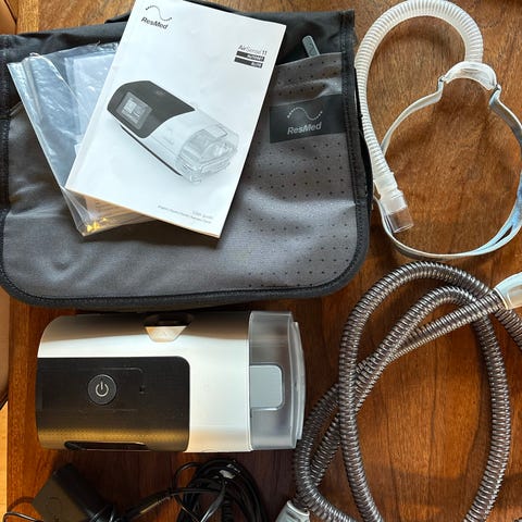 +Mask och slang(ResMed Quattro) följer med, desinficerad men rekommenderas att byta silikondelar