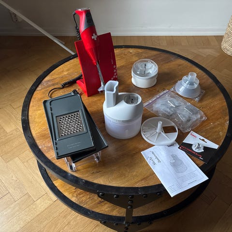 Bamix stavmixer tradlös, köpt för ett år sedan, sporadiskt använd men jag känner inte att den passar för små mängder och jag är ett litet hushåll.