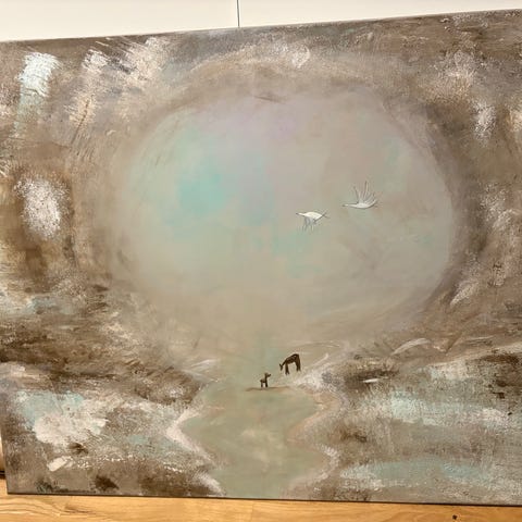 Ståtlig pastell av Veiko Aaltona 1959. Heliga människor i naturen.