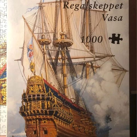 Come to Sweden Götakanal pussel med motiv från Sverige, inklusive Göteborg, Stockholm och Götakanal. Pusslet består av flera bitar och visar en kvinna i röd klänning sittande vid kanalen med en svensk flagga i bakgrunden.