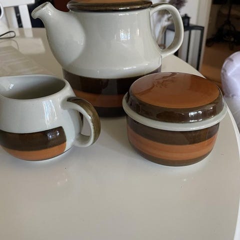 Rörstrand smörask i porslin med dekor i blått, grönt och rött. Asken har en rektangulär form och består av två delar, en botten och ett lock. Passar för förvaring av smör eller andra små livsmedel.