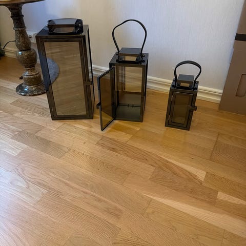 Säljer 8 st fina ljuslyktor i metall i rött och silver. De har mönstrade hål som ger ett jättefint ljusspel (se bilder). Passar perfekt för värmeljus eller LED-ljus. • 3 st röda. • 5 st silver • Stabil metallfot. • Fint skick