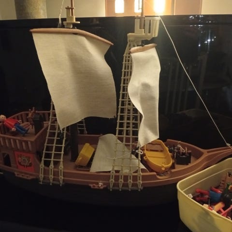 En flyttkartong med diverse Playmobil