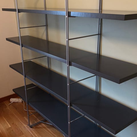 Fin bokhylla i valnöt med barskåp, hyllskåp och skåp med lådor. Fint skick