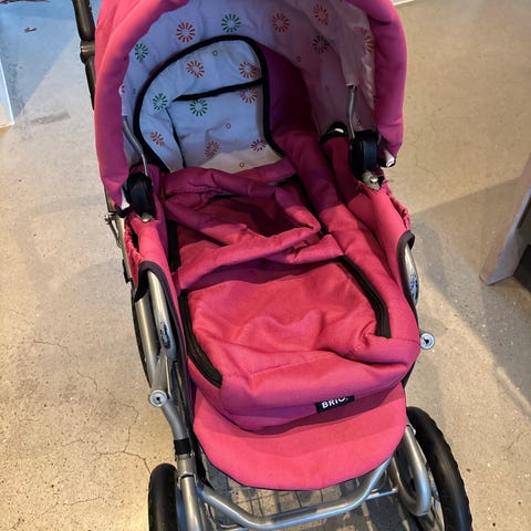 En fin BRIO kombivagn till dockan, som nästan uteslutande används inomhus. De gånger vagnen varit utomhus har varit under kortare promenader. Men den har alltid tagits in och förvarats inomhus.