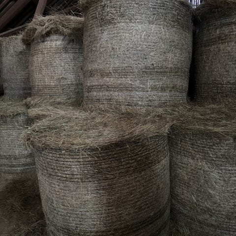 Finns även några i torrhö, kan räkna vid intresse. Men ca 20 st kvar. De är stora balar på ca 300 kg och 170-180 cm i diametern. Balade med snöre.