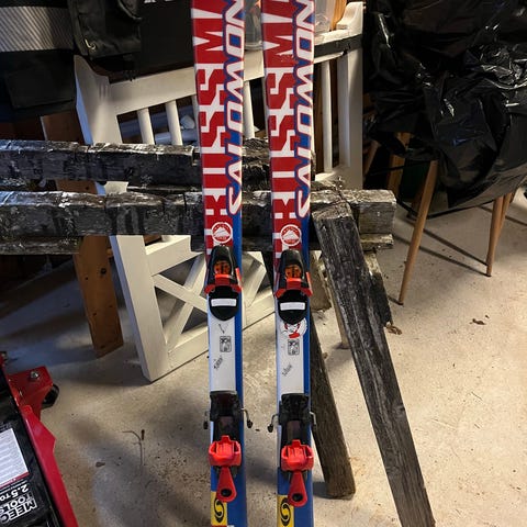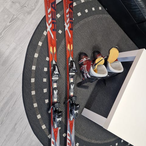Skidor Head 180 cm. bindning Tyrolia, pjäxor Salomon SX 31 storlek 45.
