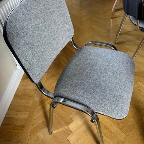 I mkt bra beg skick. Finns några märken på dynan där stolarna stått staplade på varandra.