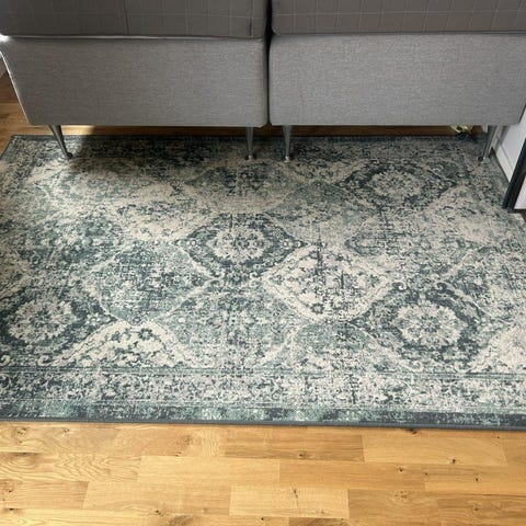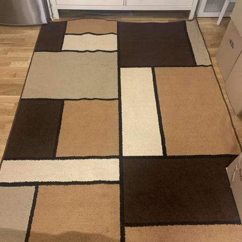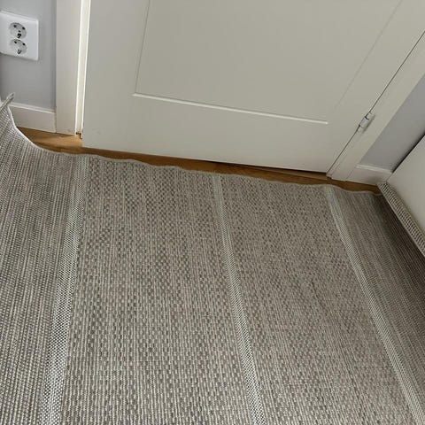 Matta naturfärgad . Måtten som står här är en gissning, eftersom jag inte kan mäta mattan just nu. Men jag kan ge exakt mått om du är intresserad av den?