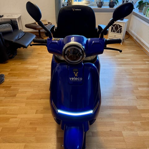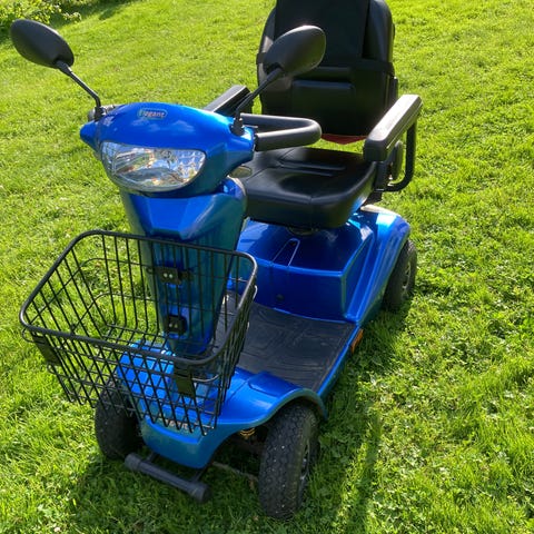 Promenadscooter i mycket fint skick. Sommar- och vinterdäck. Ej mycket använd (25 mil). Har alltid bott inomhus och är kontinuerligt underhållsladdad.