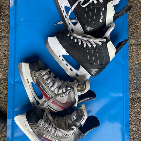 Ishockeyskridskor för barn i storlek 37. Skridskorna är avsedda för ishockey och har en design som passar för sporten.