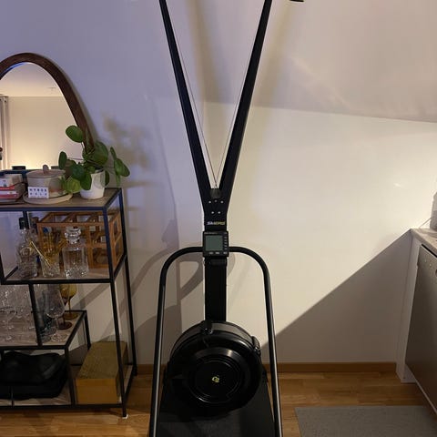 träningsmaskin med riktiga stavar, mycket skidlikt, tre par stavar följer med 140cm,150cm,155cm, det är långa maskinen 285x70 , digital display med träningsdata, ny oanvänd maskin