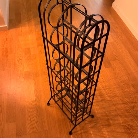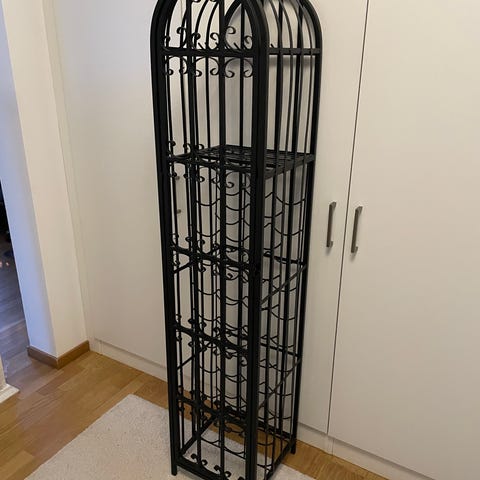 Säljer ett lite ovanligare vinställ i smidesjärn som ska monteras på en vägg.
