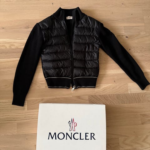 Jacka/ vadderad kofta från Moncler. Bra skick, inga anmärkningar. Är storlek L men passar en M.