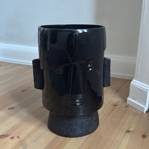 Härlig kruka med ansiktet av en herre med mustasch. Ge honom olika ”frisyrer” med krukväxter.