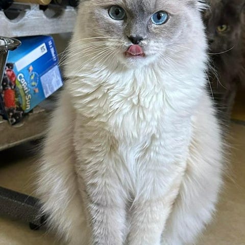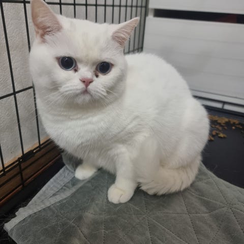 Kattens pappa är brittisk, och hans mamma är ragdoll.