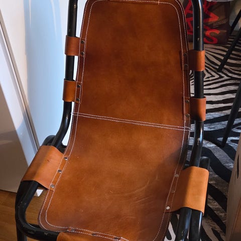 Dansk Skinnstolar, brun köpte den när vi flyttade in till våran första lägenhet. Stabil jätte fin skick.
