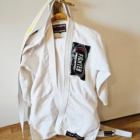 Karate/ Jujutsu-dräkt, Budo Nord Kata. Inkl. gult bälte. Har använts varsamt av 195 cm lång kille, så är i bra skick.