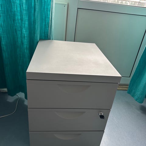Säljes två vita skrivbordshurtsar i modell IKEA Tore, mått: Bredd 40cm X Djup 50 cm X Höjd 72cm, trasig kant på ovansidan men inget som syns om man har dem under en skrivbordsskiva. Funkar perfekt i barnrum eller liknande.