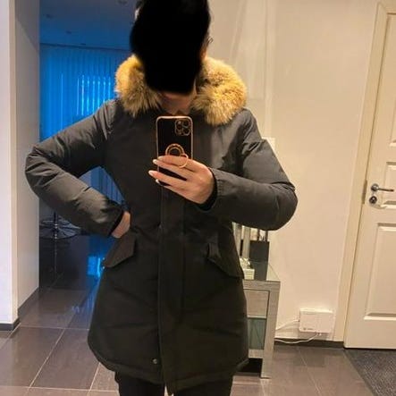 Woolrich Arctic Parka vinterjacka i storlek S för kvinnor. Jackan är svart och tillverkad av dunmaterial, vilket ger värme och isolering. Modellen är utformad för kalla vinterförhållanden och har en pälsbeklädd huva för extra skydd mot kyla.