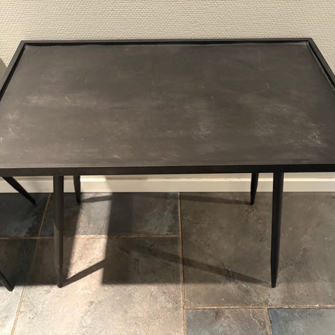 2 st Sidobord med ram av vitt stål och glasskiva. Ursprungligen med liten hylla under men de är borttagna, fästen är kvar, se bild 3. Höjd 74cm, bredd, 36cm, längd 100cm. 300kr/st eller 500kr för båda.