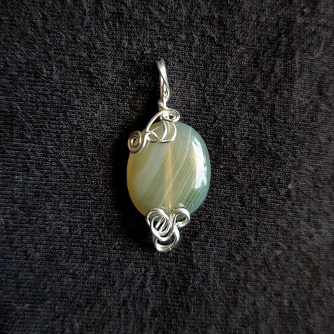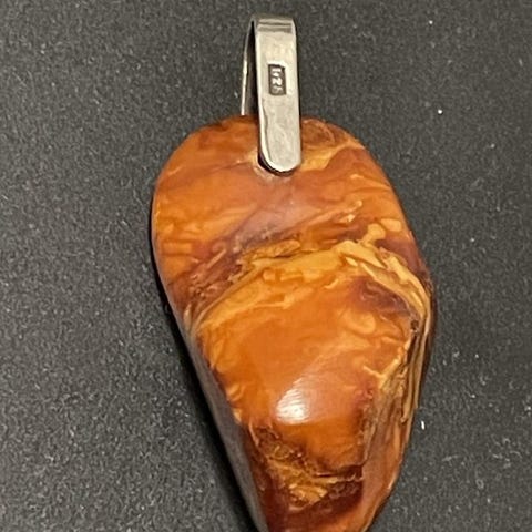 Ett större hänge med en laxrosa agat sten med hänget i 18 karat vit guldpläterad infatting
