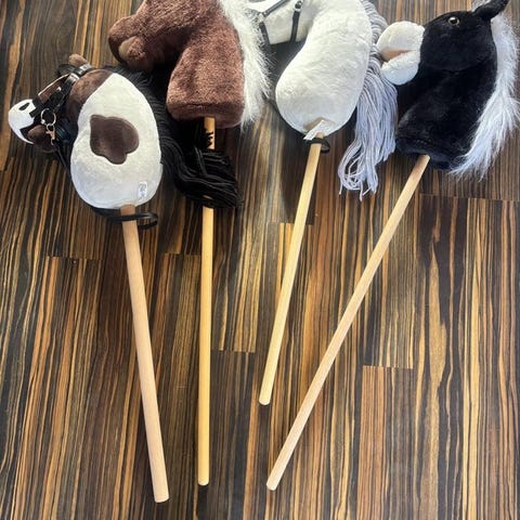 Dottern säljer sina käpphästar med tillhörande utrustning. Allt säljs tillsammans.