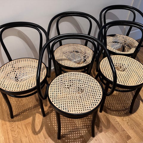 Bra skick men sits av rotting behöver bytas. Thonet märke finns på båda.
