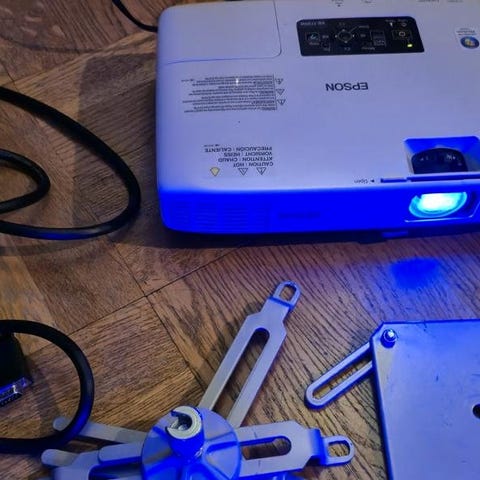 Bytt till ny lampa, men projektorn stänger av efter 20 min — troligen överhettning pga damm, vanligt fel → lätt fix för den som vill ta sig tid att rengöra. Därav priset.
