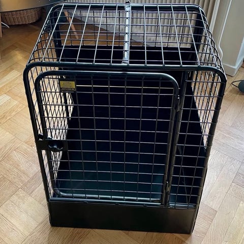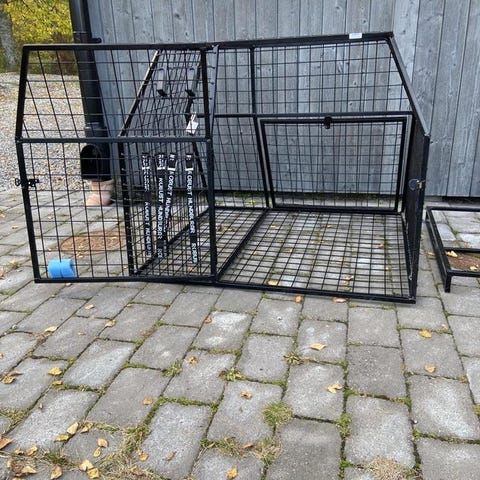 En robust hundbur för bilen. Mått enligt bild. Använd men i fint begagnat skick.
