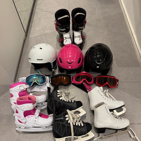 Barn - snowboard Burton (SÅLD), stavar, ryggskydd (SÅLDA), hjälmar