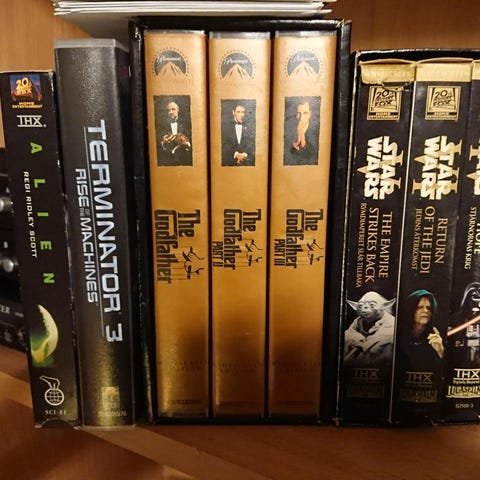 The Godfather Widescreen Edition VHS-film innehållande filmerna The Godfather och The Godfather Part II. Filmerna är i färg och speltiden är cirka 3 timmar och 12 minuter. VHS-kassetterna är kompatibla med standard VHS-spelare.