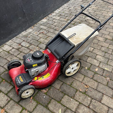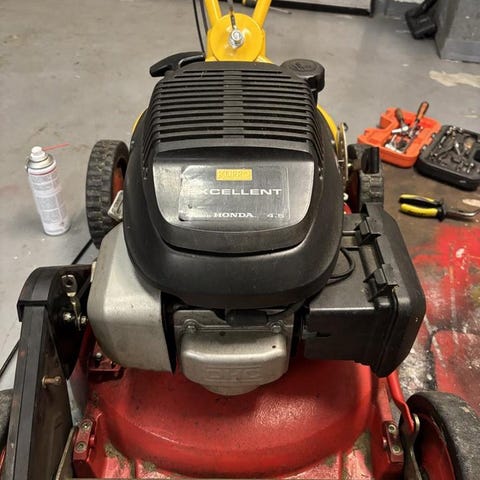 Populär och hållbar gräsklipparemotor. Gräsklipparen kan behöva en liten service.