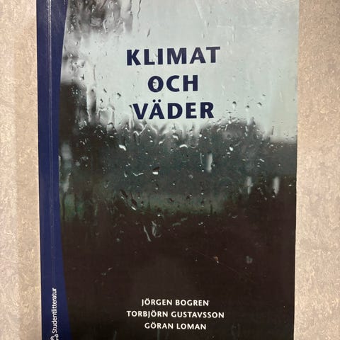 Bok med titeln Klimat och Väder, författad av Jörgen Bogren och Torbjörn Gustavsson. Innehåller information om klimat och väderfenomen.