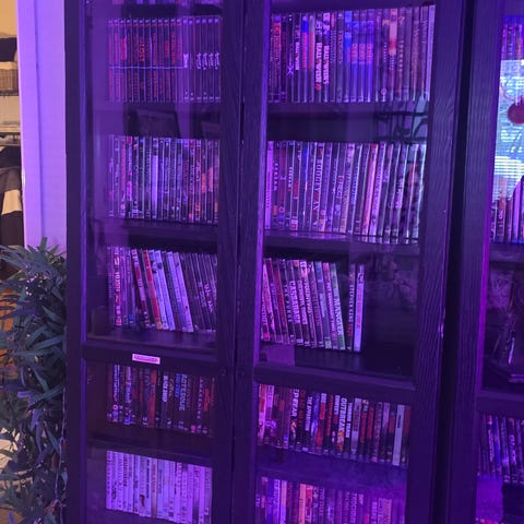 Dörrar längst ner, lådor på mitten och hyllor i övre delen inkl glasdörrar.