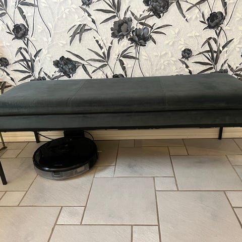 Trouville-bänken är tillverkad på en svart metallram, med en sits och dyna i mörkgrått Manchester-tyg. Bänken passar lika bra i sovrummet som i vardagsrummet eller hallen.