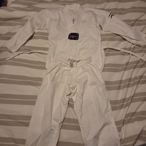 Taekwondoskydd barn storlek S: underarmsskydd + ben/vristskydd + barnsuspensoar.