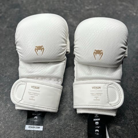 Helt nya Venum Challenger 3.0 mma handskar i svart och vitt. De luktar fortfarande läder och har aldrig används. Handskarna är designade för att ge skydd och komfort vid träning . De har justerbar kardborreknäppning för säker passform och är tillverkade av material som ger hållbarhet och stöd under användning.