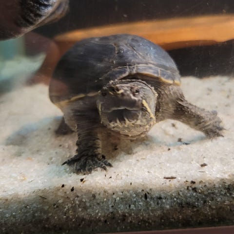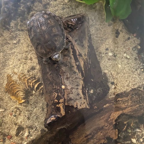2 st mysksköldpaddor med tillhörande akvarie med bänk och värmelampor.