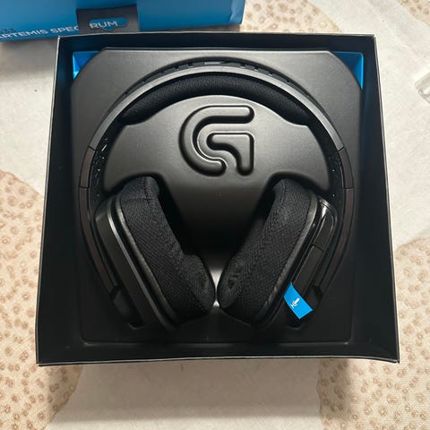 Logitech G432 gaminghörlurar med över örat-design i svart och blå färg. Utrustade med en mikrofon och USB-anslutning. Hörlurarna är anpassade för spel och erbjuder komfort med vadderade öronkuddar.